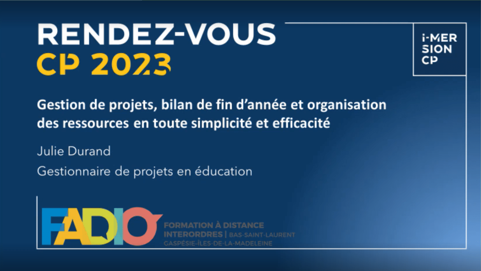 En conseil pédagogique, où la complexité des projets et des ressources peut parfois sembler écrasante, trouver des méthodes simples et efficaces pour gérer le travail est essentiel. C’est dans cette optique que Julie Durand, gestionnaire de projets en éducation à FADIO, propose un atelier intitulé Gestion de projets, bilan de fin d’année et organisation des ressources en toute simplicité et efficacité.