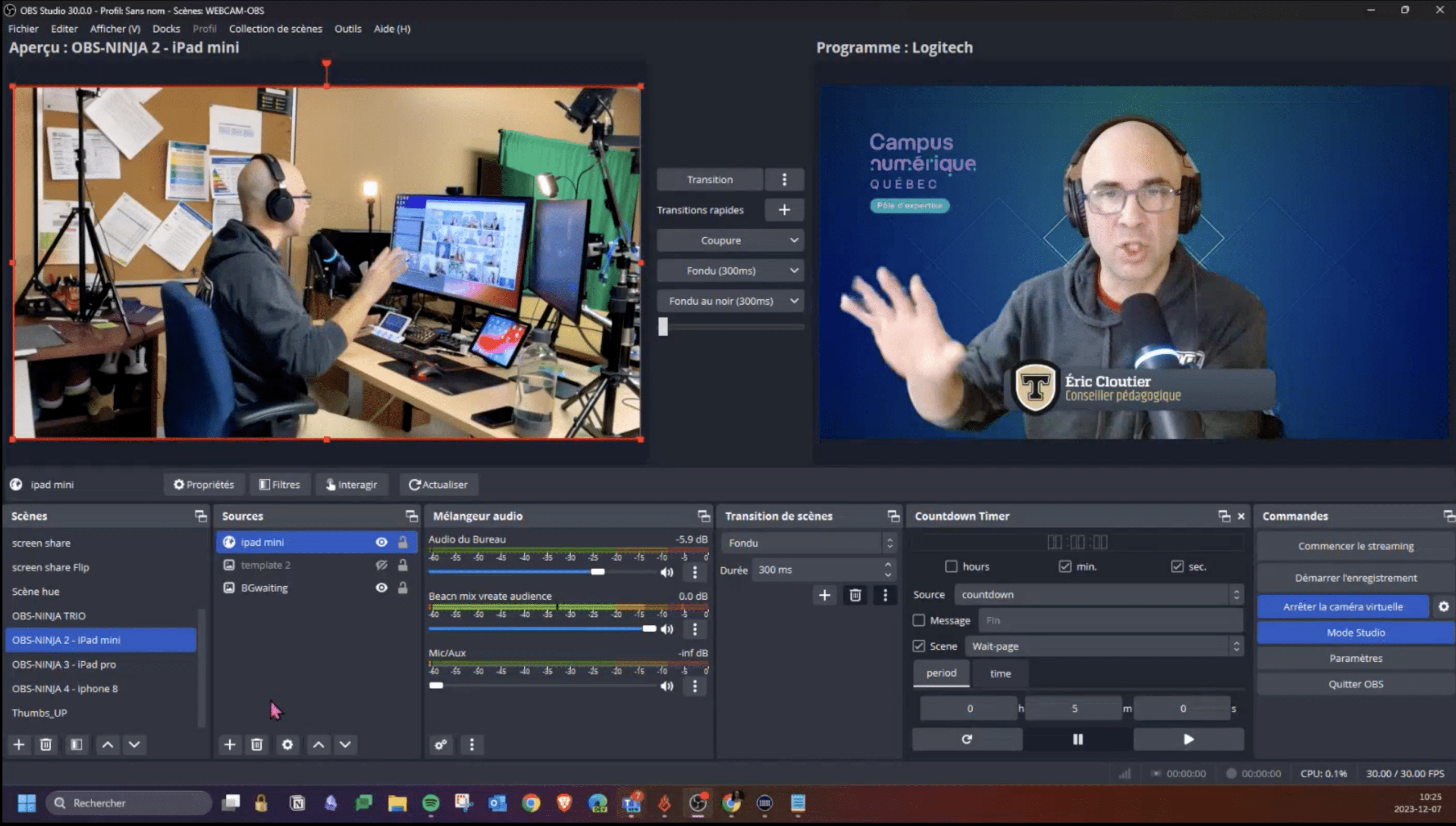 « Je suis content d’avoir commencé à utiliser OBS AVANT la pandémie! »