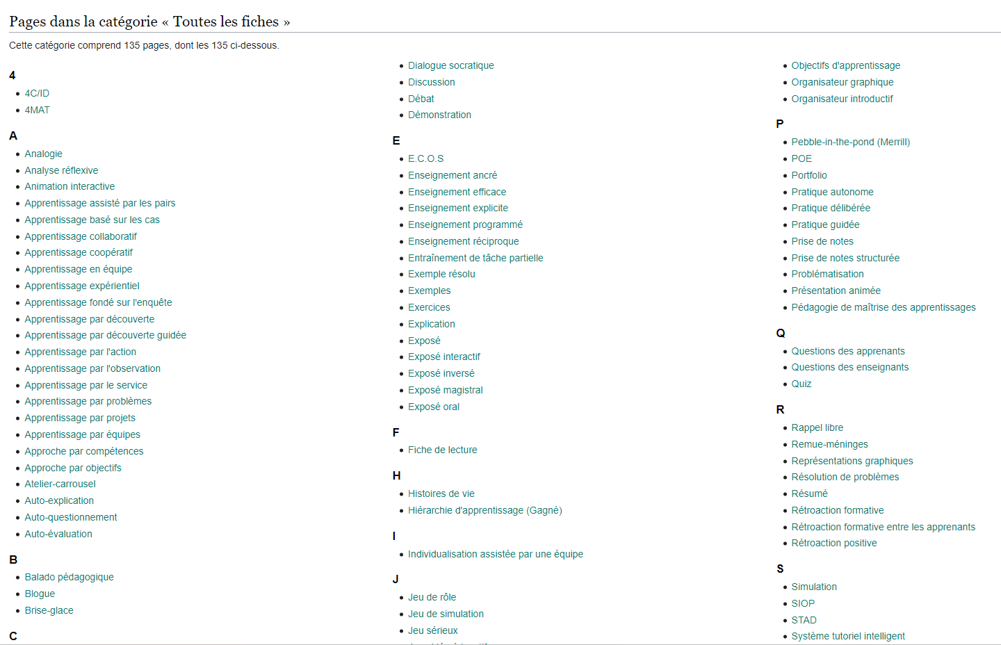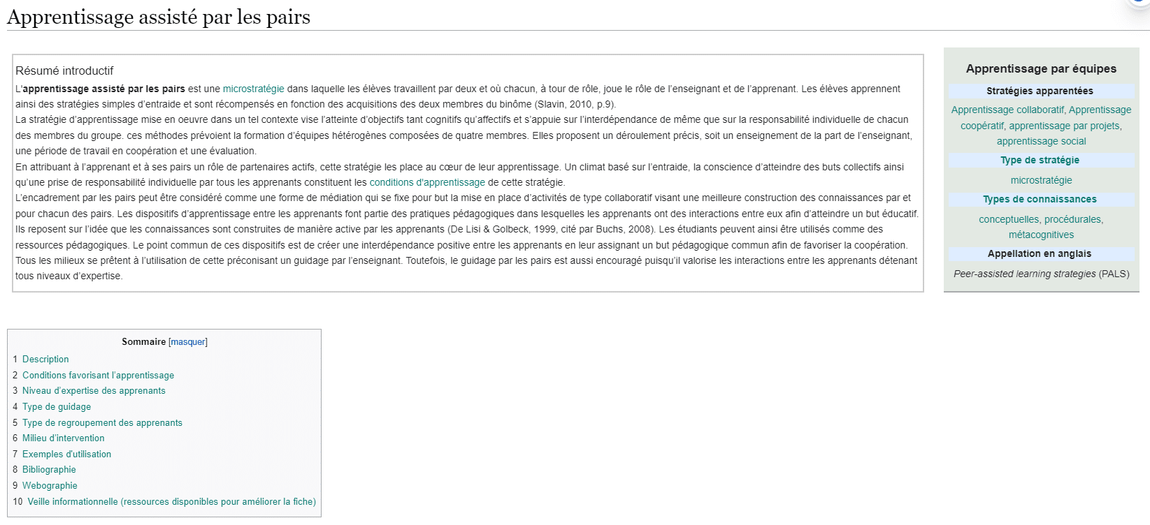Chaque fiche contient une définition, une description, différentes stratégies pour utiliser la notion, mais également des références bibliographiques. Le contenu du site est sous licence Creative commons Attribution (CC BY-SA 4.0). Il est également possible de voir l’historique des fiches, car elles sont proposées en wiki.